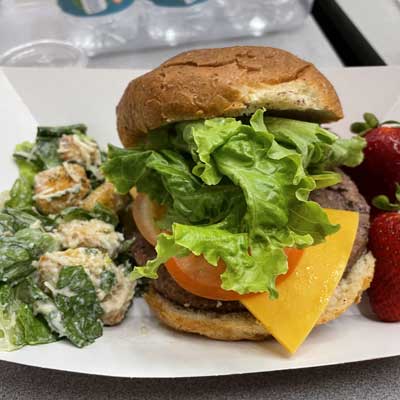 This kid favorite is made with responsibly sourced beef and served on a locally baked whole-grain bun.